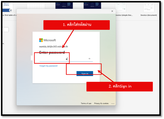 ภาพที่ 1- 36 แสดงหน้าจอการใส่รหัสผ่านแล้วกด Sign In