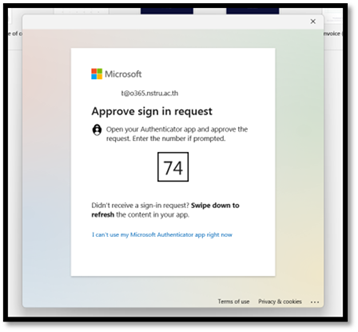 5. ระบบจะมีการแจ้งเตือน รหัสความปลอดภัย 2 ขั้นตอน ดังภาพที่ 1 – 37 โดยในขั้นตอนนี้ให้เปิด Application Authenticator ในโทรศัพท์ ให้ตรงกันกับที่แจ้งในคอมพิวเตอร์ ดังภาพที่ 1 – 38