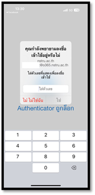 ภาพที่ 1- 38 แสดงหน้าจอโทรศัพท์ ในขั้นตอนการใส่ยืนยันรหัสความปลอดภัย 2 ชั้นใน แอปพลิเคชัน Authenticator