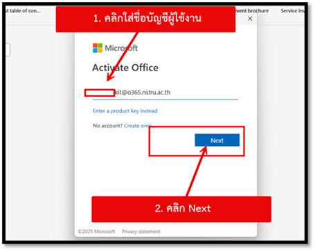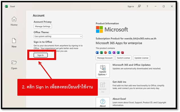 วิธีการยืนยันสิทธิ์การใช้งาน (Activated) Microsoft Office 365 (กรณีที่ติดตั้งโปรแกรม Microsoft Office แล้ว และยังไม่ลงชื่อเข้าใช้งาน)